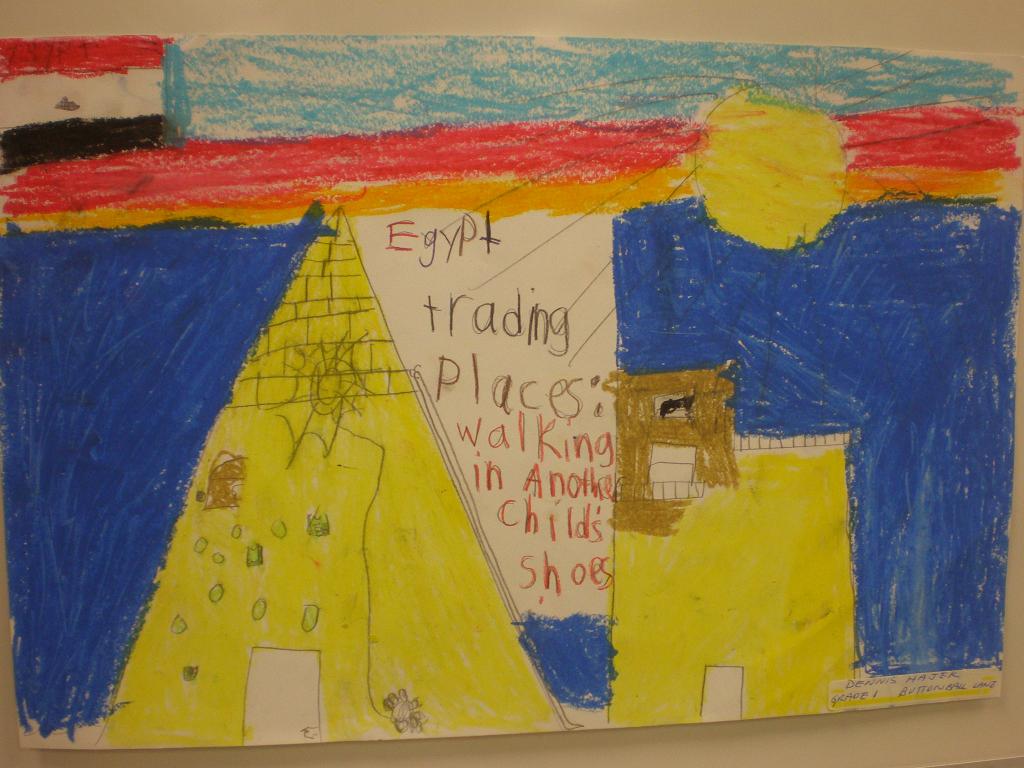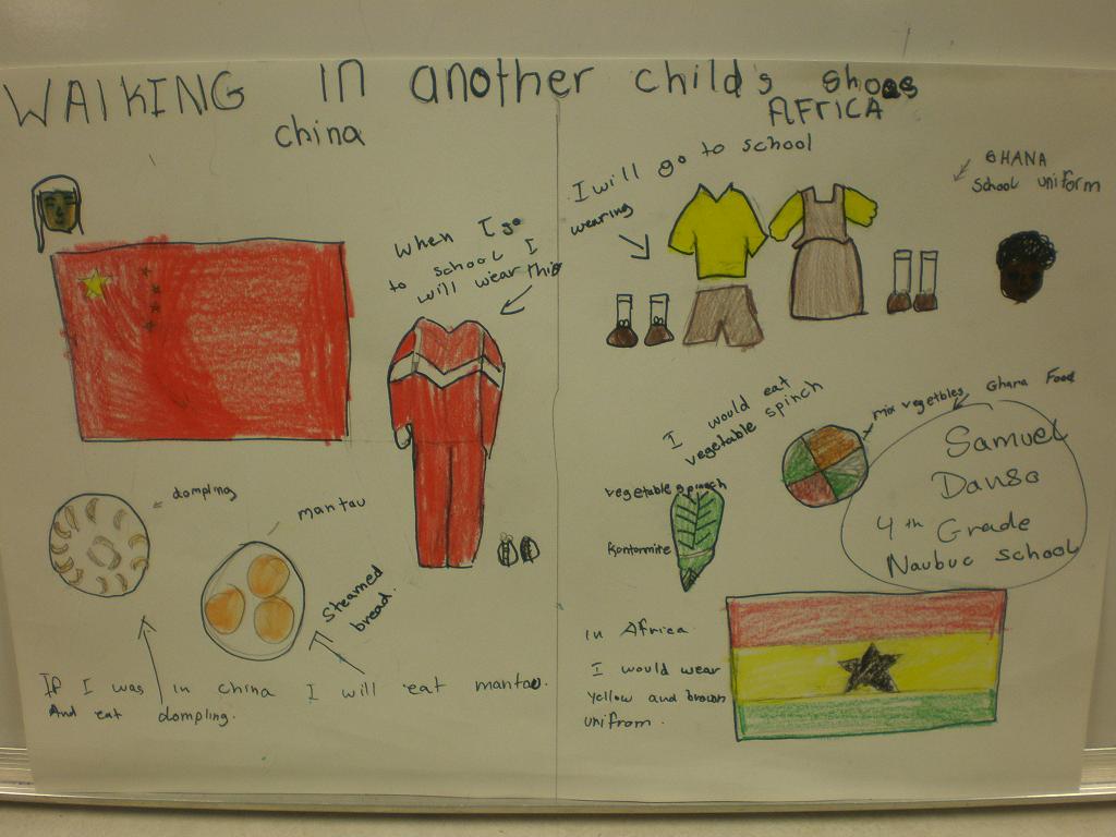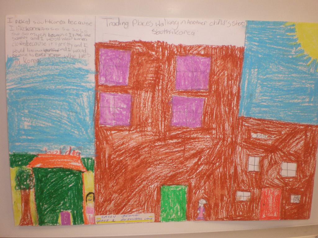 When creating your work of art, keep in mind the similarities and differences between your life and the lives of other children throughout the world. Show how you think the children in another country live and what they experience.